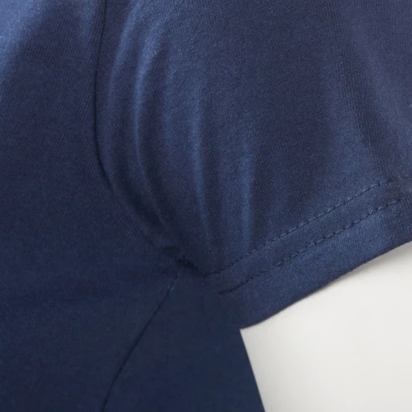 niekurczliwy materiał, taśma wzmacniająca od ramienia do ramienia, okrągłe wykończenie wokół szyi, podwójne przeszycia wokół szyi, przy rękawkach i u dołu koszulki, bez szwów bocznych